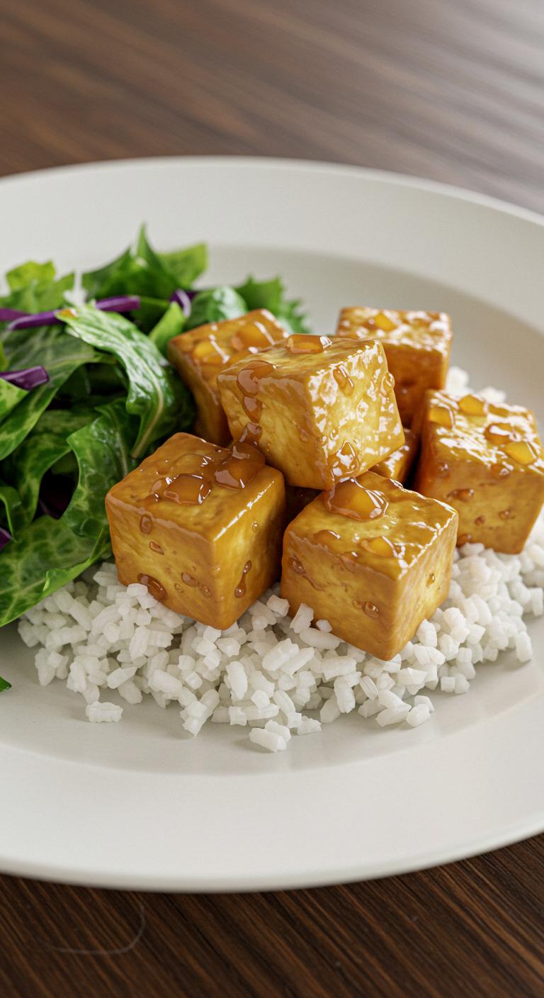 - Sauté tofu in olive oil until golden. Add cider and soy sauce; simmer until thickened.