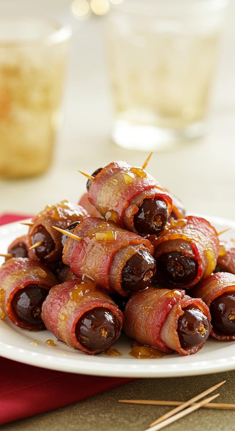 - Preheat oven to 375°F (190°C). Wrap each date with half a slice of bacon and secure with a toothpick.