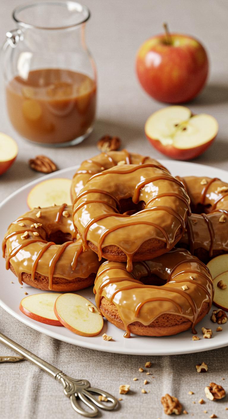 Indulge in a sweet caramel apple experience with these delightful donuts!