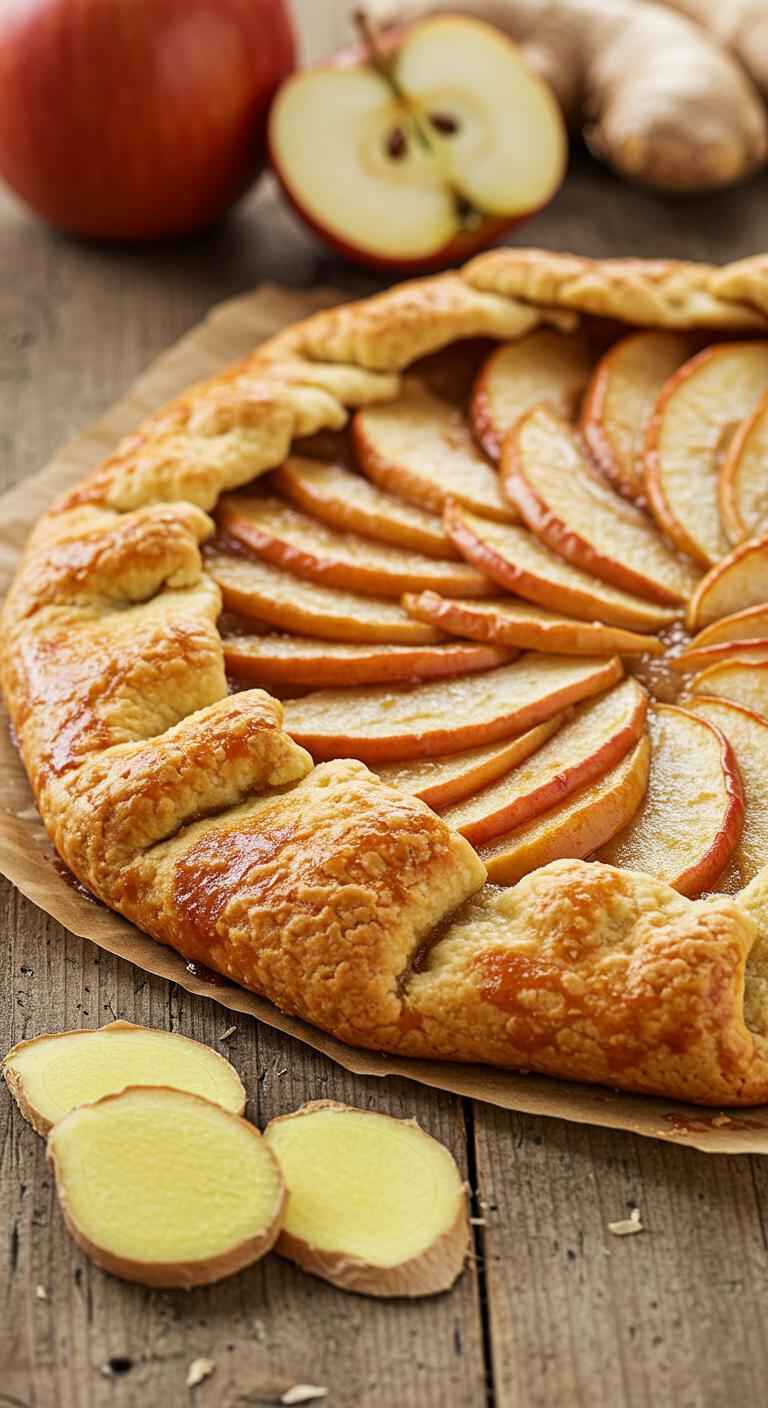 - Combine apples with grated ginger, sugar, and cinnamon. Pile onto the crust.