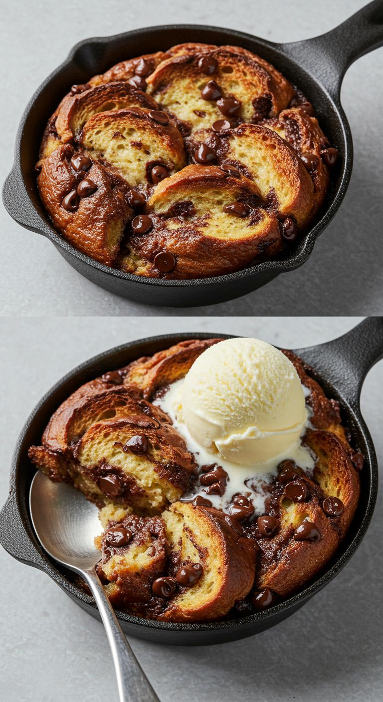 - Combine milk, eggs, sugar, and vanilla; stir in bread and chocolate chips.