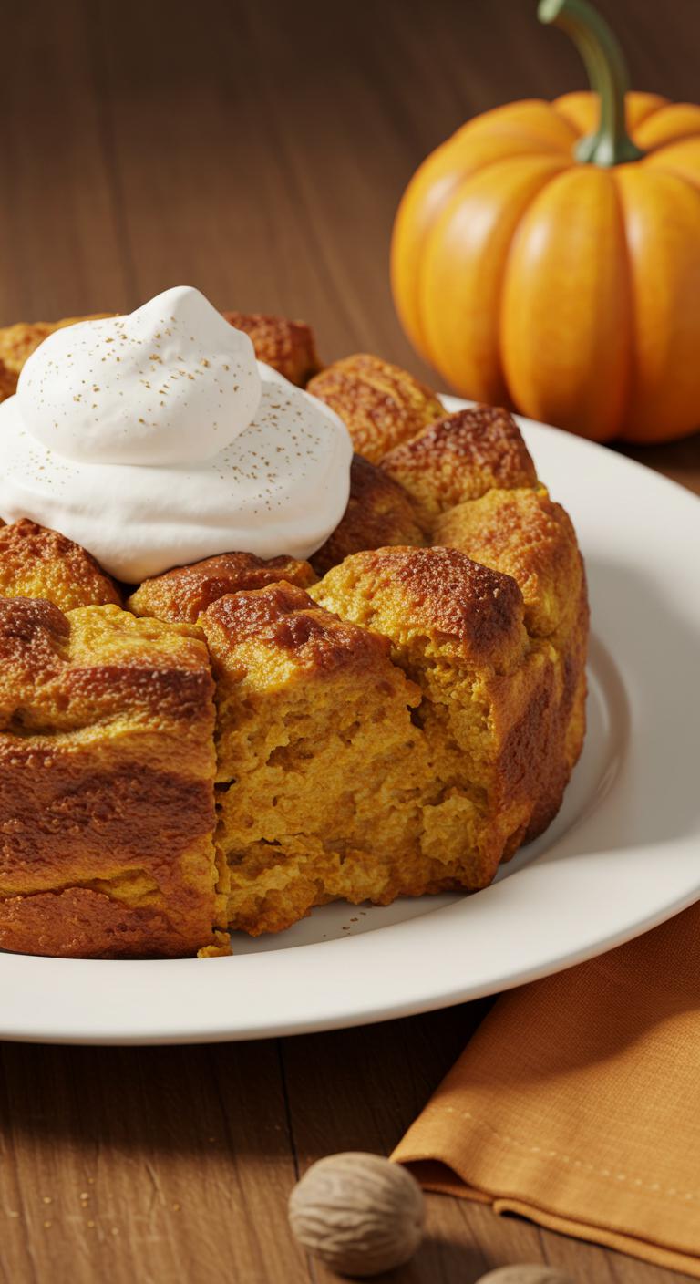 - Mix milk, pumpkin, eggs, sugar, and spice; combine with bread.