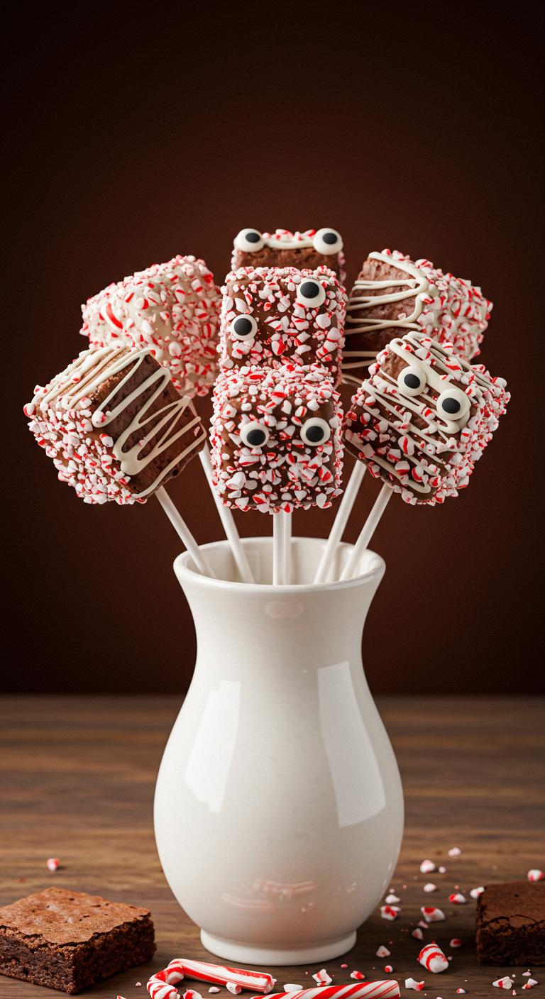 Candy Cane Brownie Pops