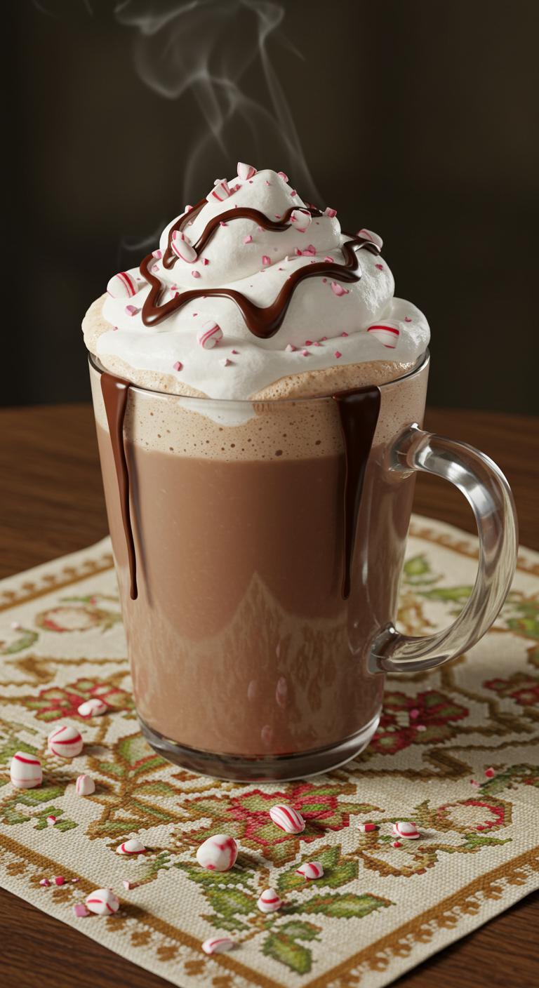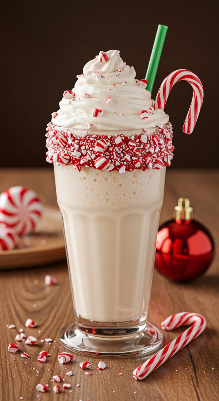 - Pour into glasses and top with whipped cream and crushed candy canes.