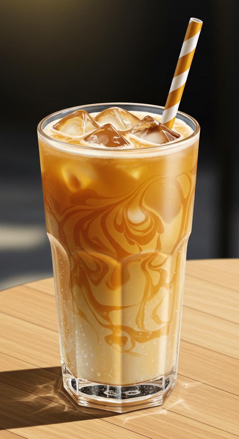 - Add steamed milk and caramel sauce, mixing thoroughly.