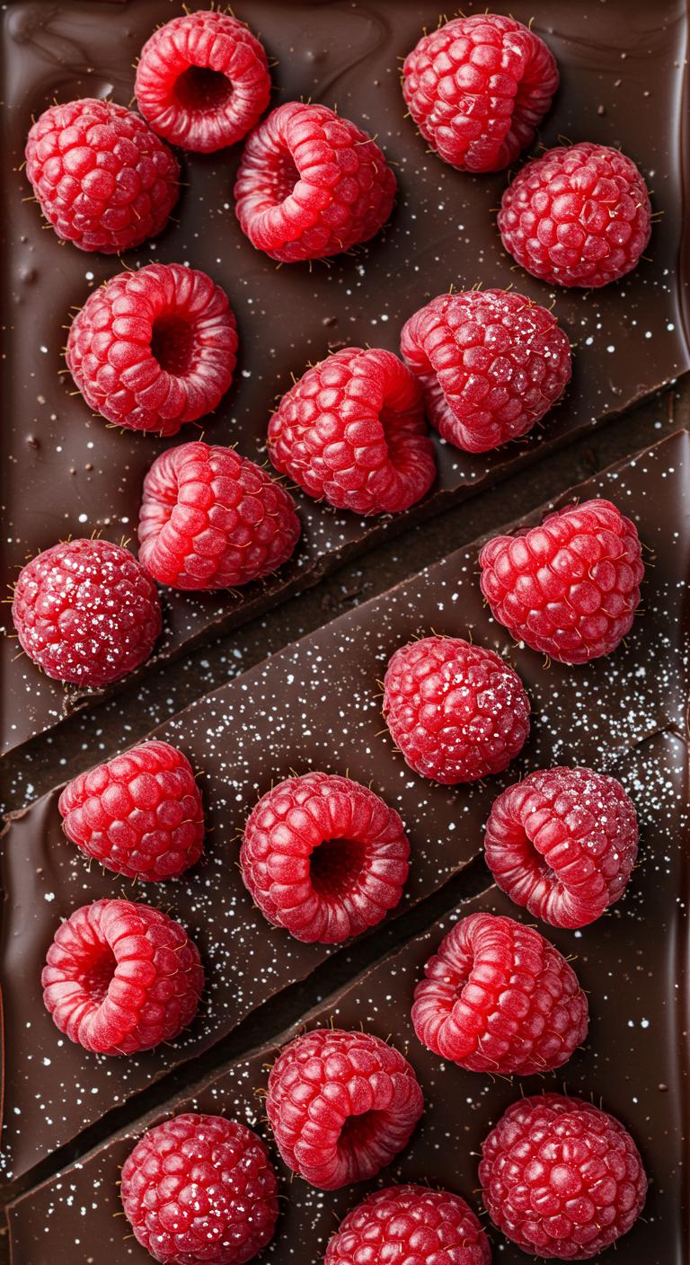 - Scatter fresh raspberries over the melted chocolate.