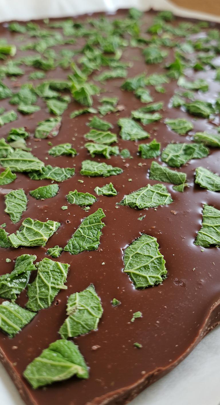 - Melt milk chocolate and mix in peppermint extract.