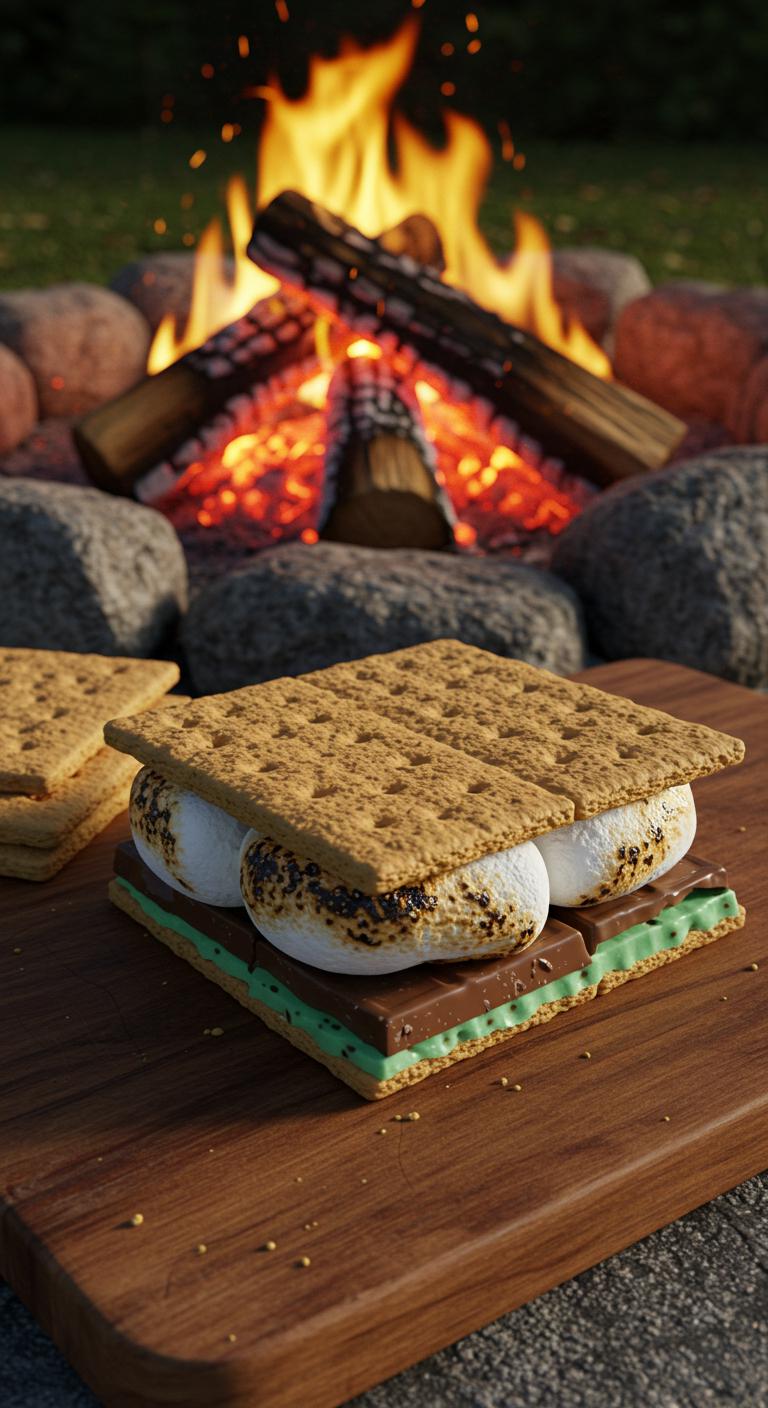 - Assemble by placing chocolate between graham crackers and a roasted marshmallow.