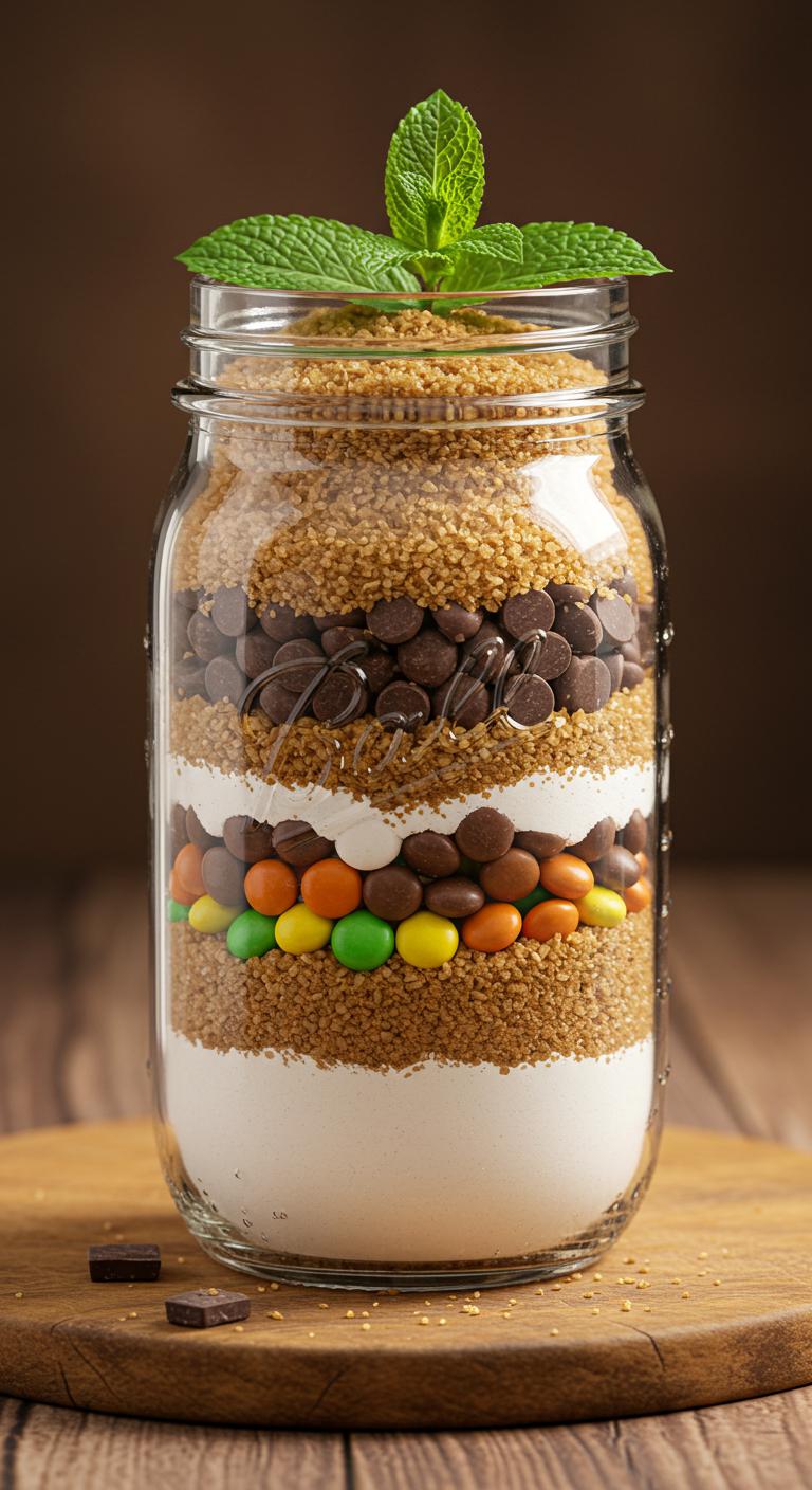 - Layer all ingredients in a jar, starting with flour and ending with peppermint candies.