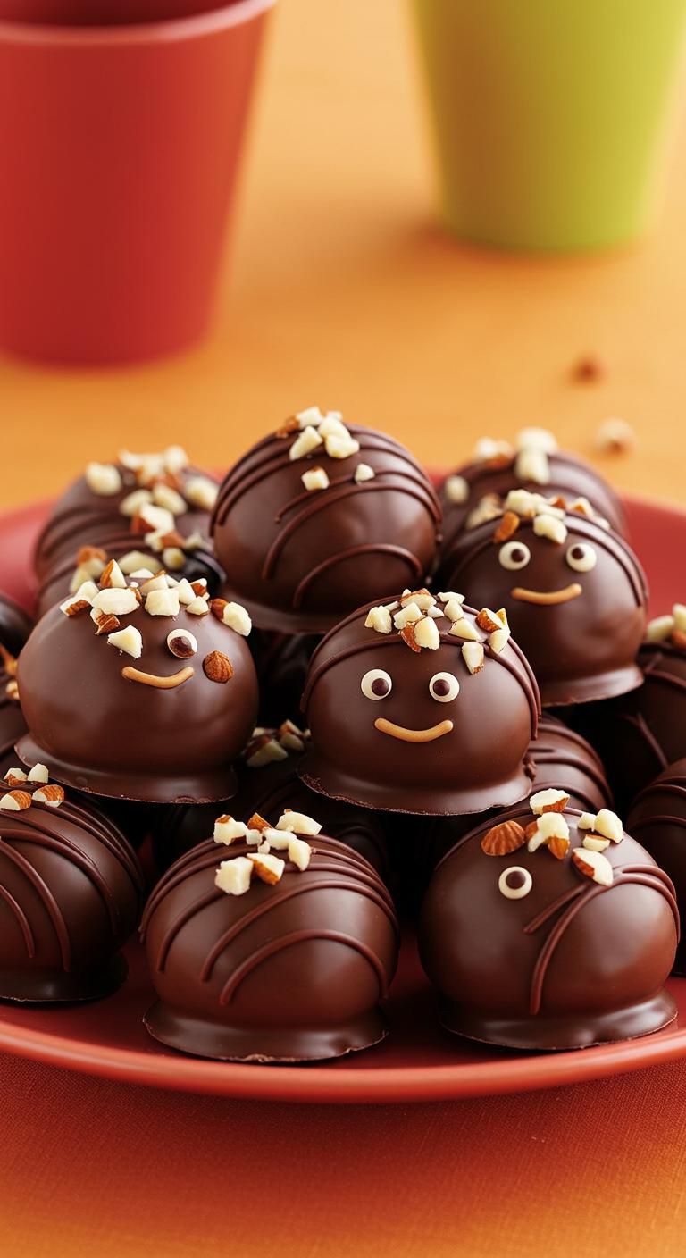 - Roll into balls and coat with cocoa or chocolate shavings.