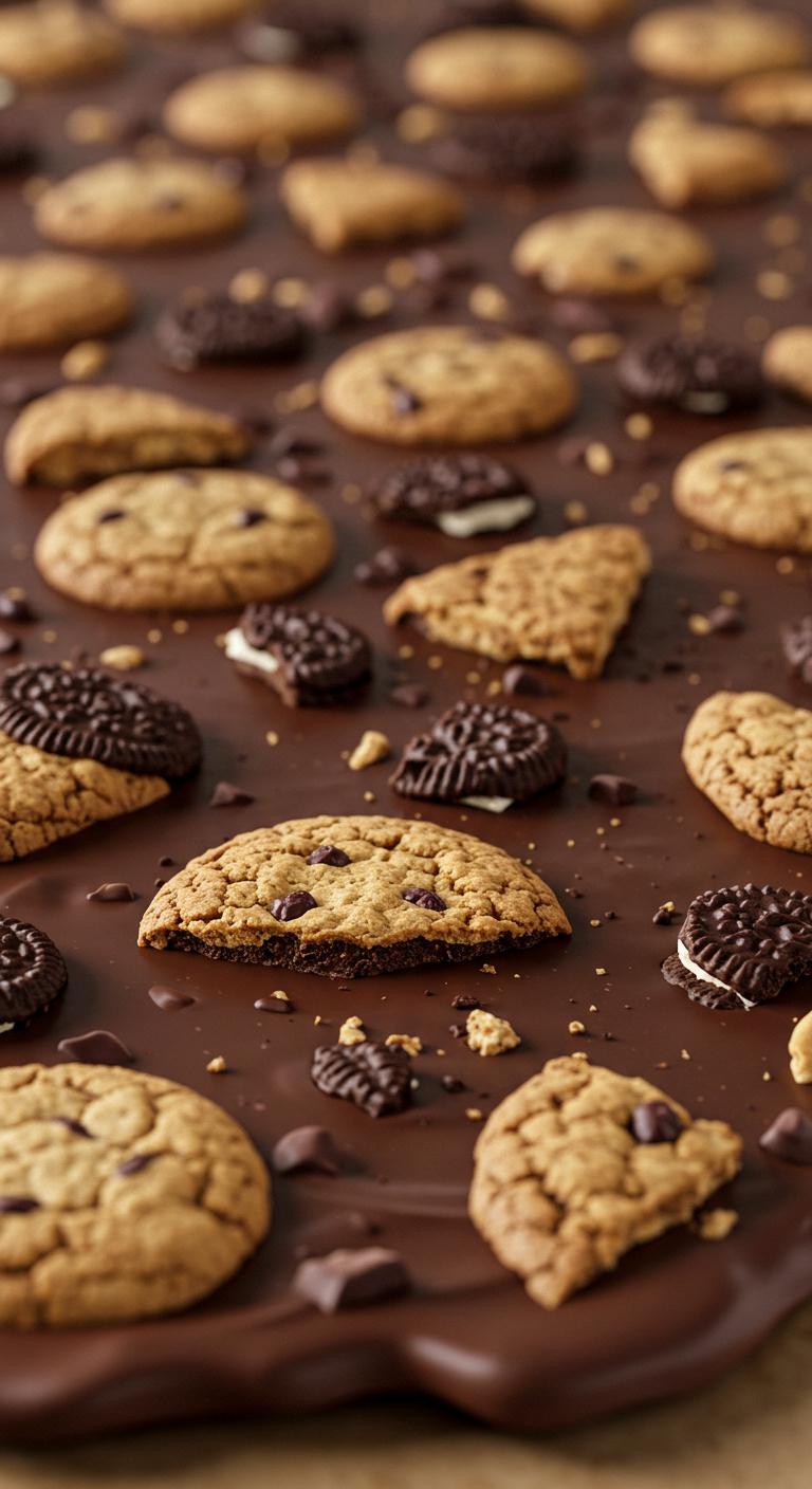 - Spread the chocolate on a baking sheet and sprinkle with crushed cookies.