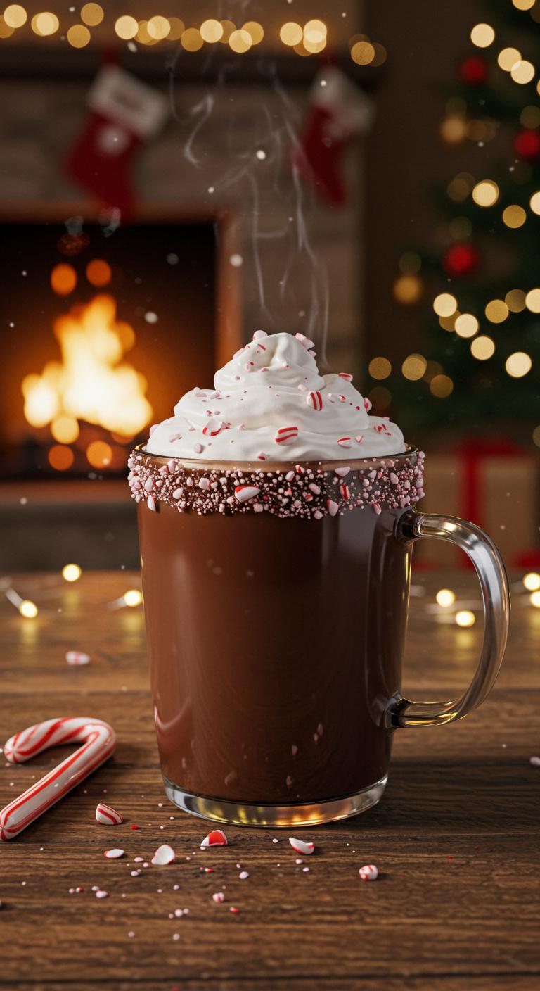 - Serve in a mug topped with whipped cream and more crushed candy canes.