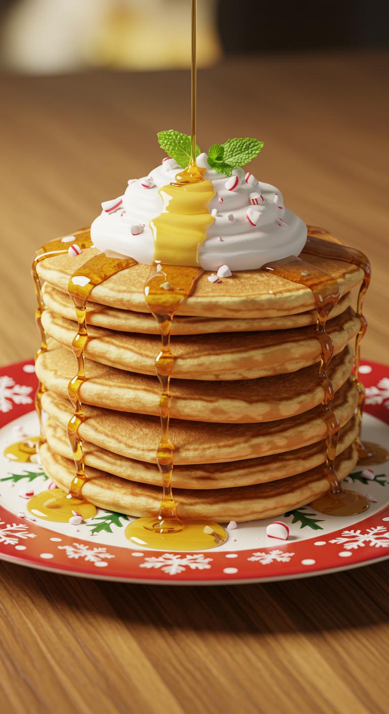 - Cook pancakes on a griddle until golden brown. Serve with whipped cream and candy canes.
