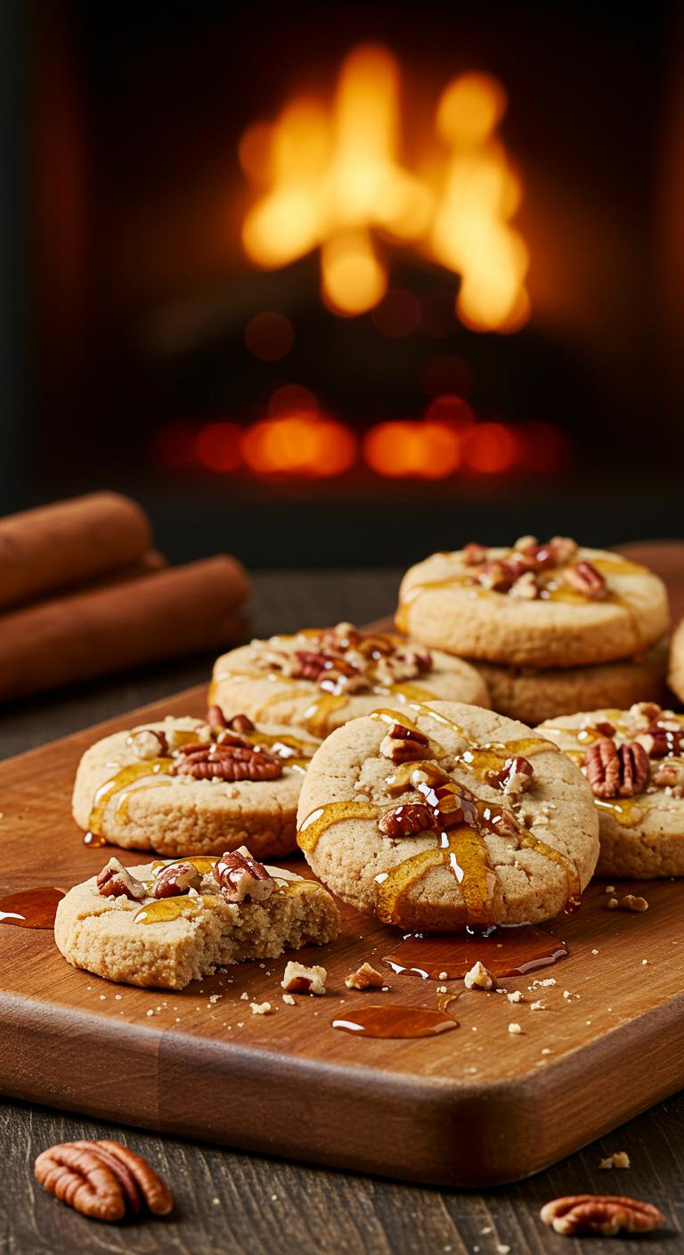 - Cream together butter and sugar, mix in maple syrup and pecans, then stir in flour until a dough forms.