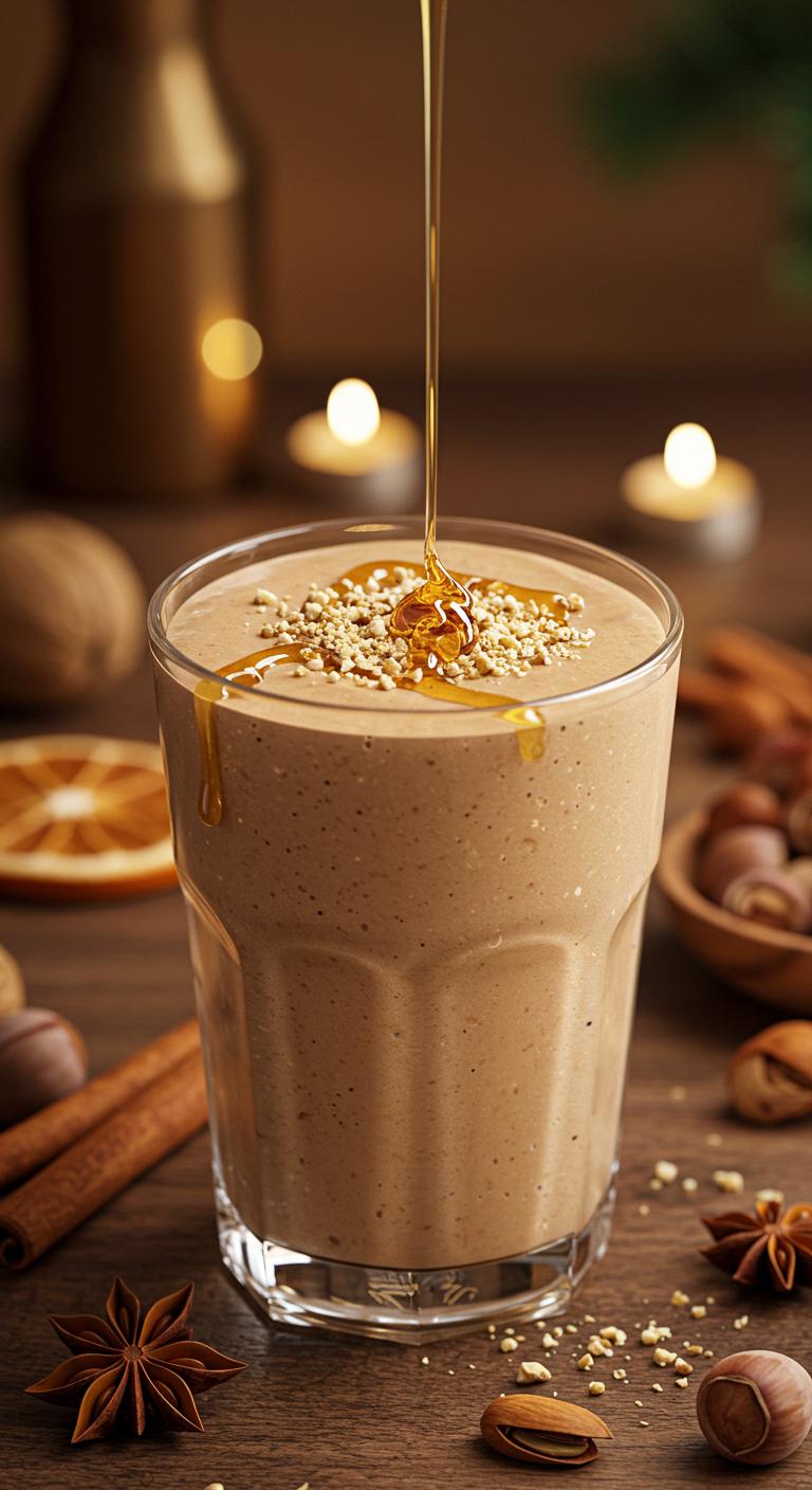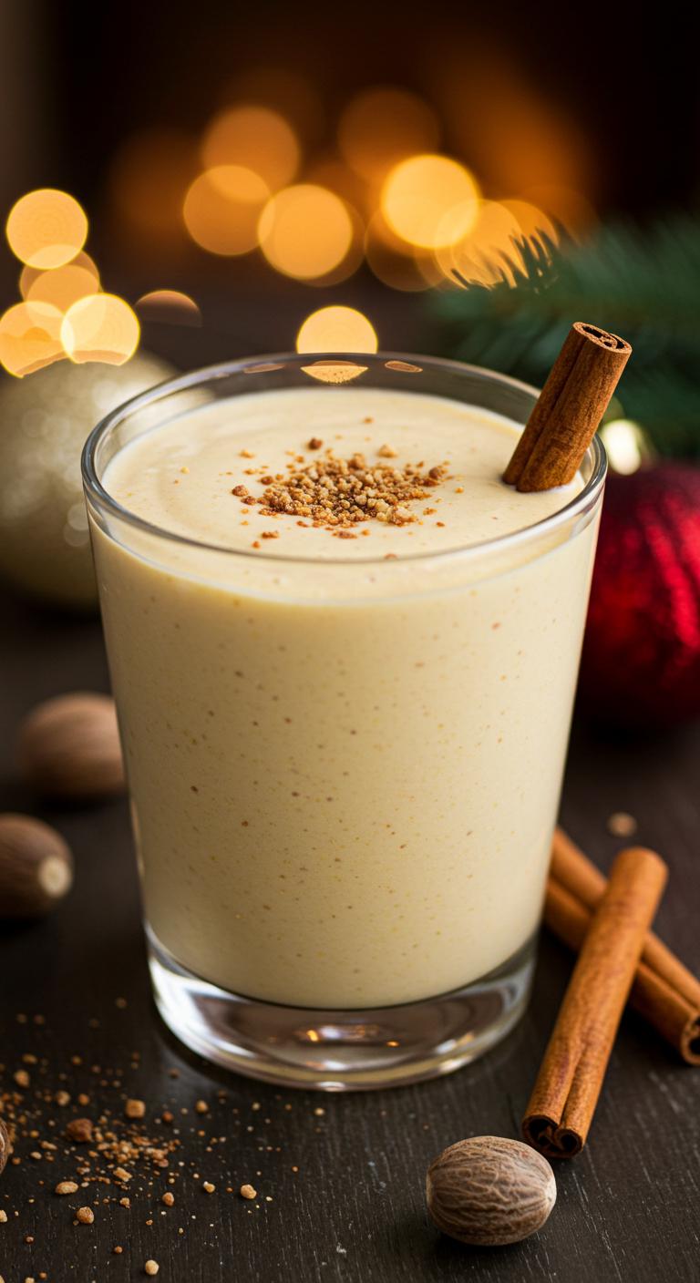 - Blend eggnog, banana, yogurt, and nutmeg until smooth.