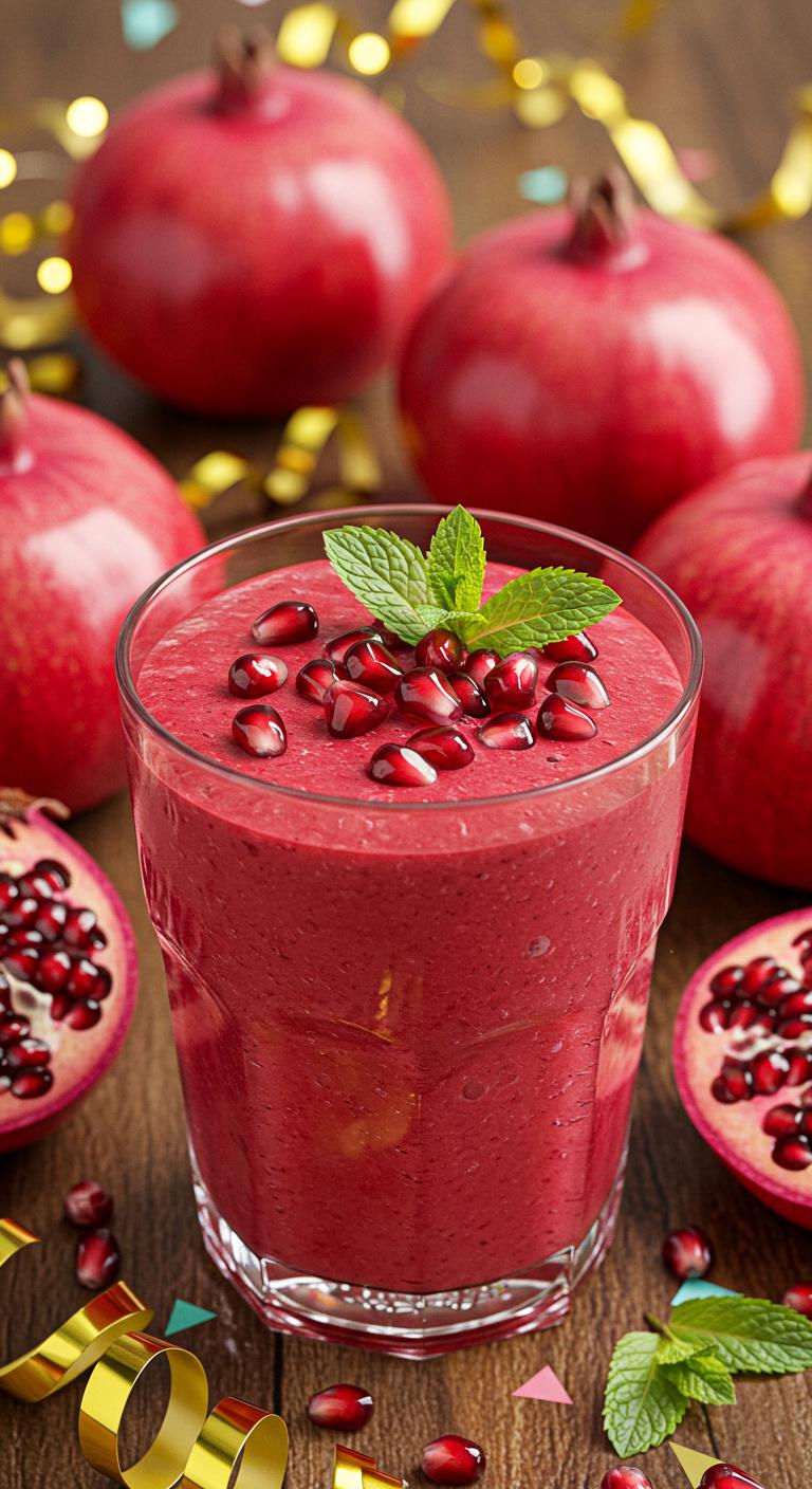 - Blend pomegranate juice, banana, and yogurt until creamy.