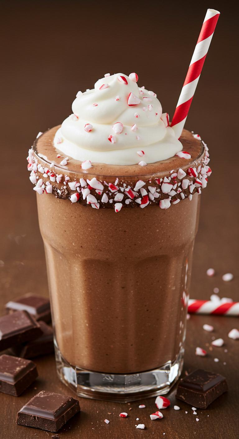 - Pour into a glass and top with whipped cream and crushed candy canes.