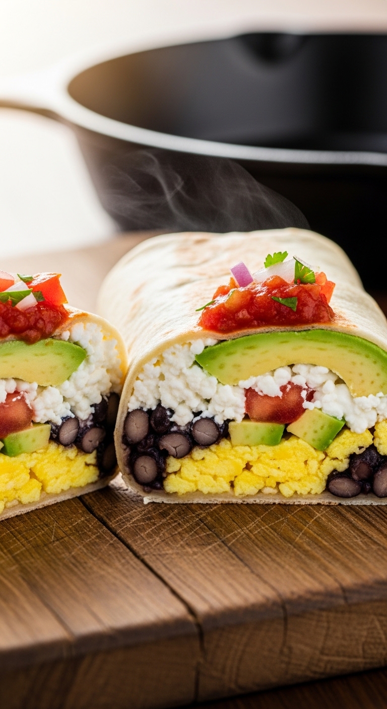 Serve with extra salsa, lime wedges, and cilantro. Pair with fresh fruit or an iced coffee. Wraps can be stored in fridge for up to 24 hours; reheat in a skillet or air fryer. Make ahead by assembling and freezing individually; reheat from frozen at 350°F (175°C) for 15–20 minutes.