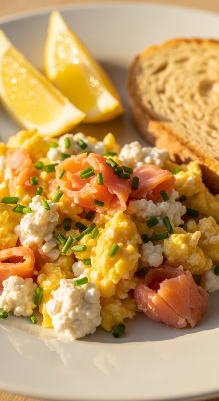 This elevated scramble mixes cottage cheese into eggs for ultra-creamy texture and pairs beautifully with smoky salmon. The result is luxurious, savory, and rich in protein. It’s perfect when you want a restaurant-style breakfast at home. The aroma of warm eggs and smoked fish is enticing.