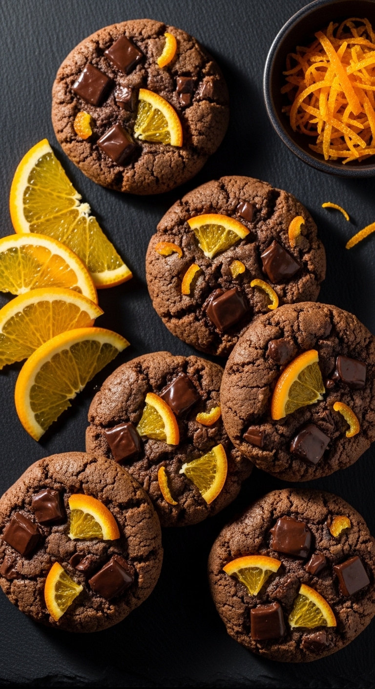 Dark chocolate and orange make a sophisticated pairing. Cottage cheese keeps the base soft while dark chocolate adds antioxidant-rich depth. These cookies smell citrusy and taste bittersweet.