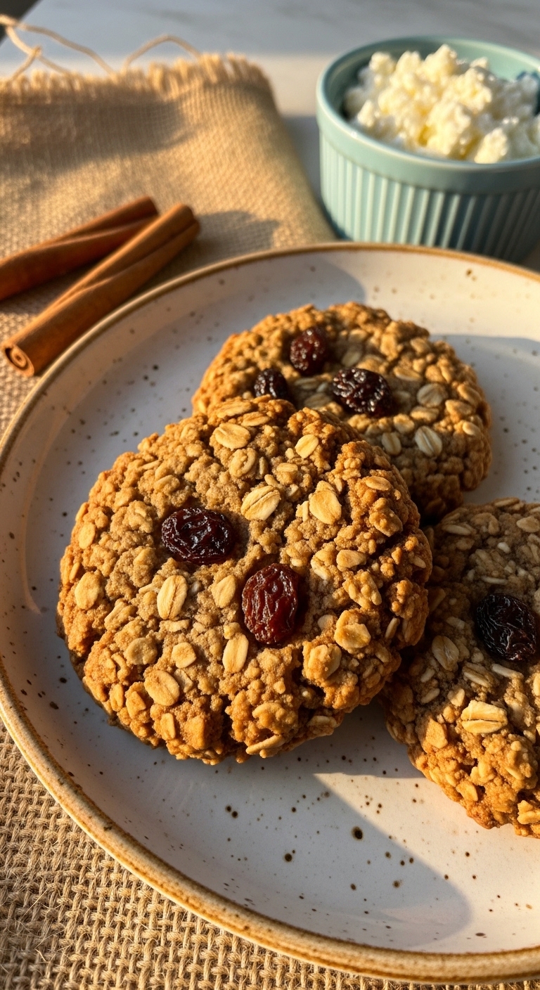 These cookies combine hearty oats with creamy cottage cheese for a chewy, wholesome bite. Warm cinnamon and sweet raisins create classic comfort flavors. They’re great for lunchboxes or a post-workout snack. You’ll notice a pillowy interior and slightly crisp edges. The aroma is cinnamon-forward and comforting.
