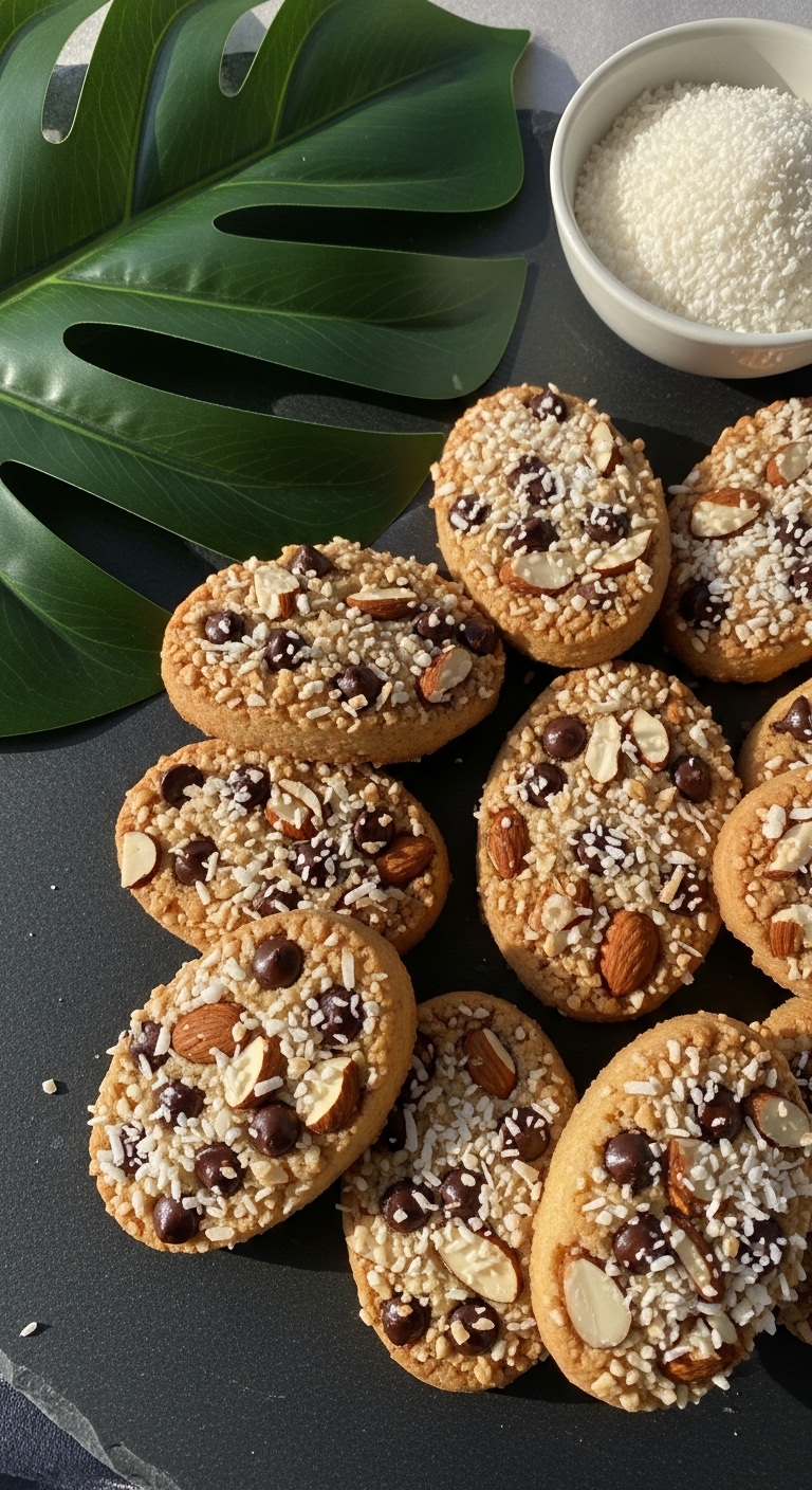 These cookies blend shredded coconut, chocolate, and toasted almonds with cottage cheese for a moist bite. The flavor is sweet and nutty with chewy coconut strands. They’re perfect for snack time or a tropical twist dessert. You’ll smell toasted coconut and chocolate as they bake. Texture is chewy and slightly crisp at the edges.