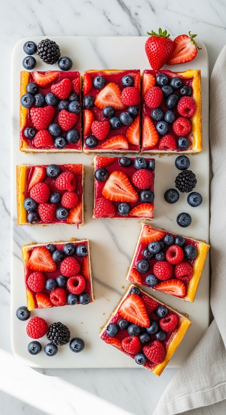 Cut into squares and serve chilled with extra berries and whipped cream. Pair with coffee or a light dessert wine. Store covered in the fridge up to 4 days. Make-ahead: bake a day ahead for easier slicing.