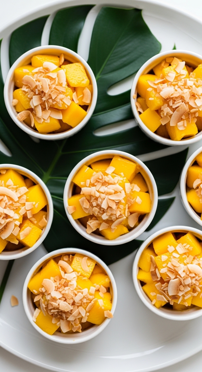 They’re ideal for summer parties, picnics, or a light dessert. Mango adds floral sweetness while coconut adds a toasty crunch. You’ll get sunny color and a fragrant tropical scent.