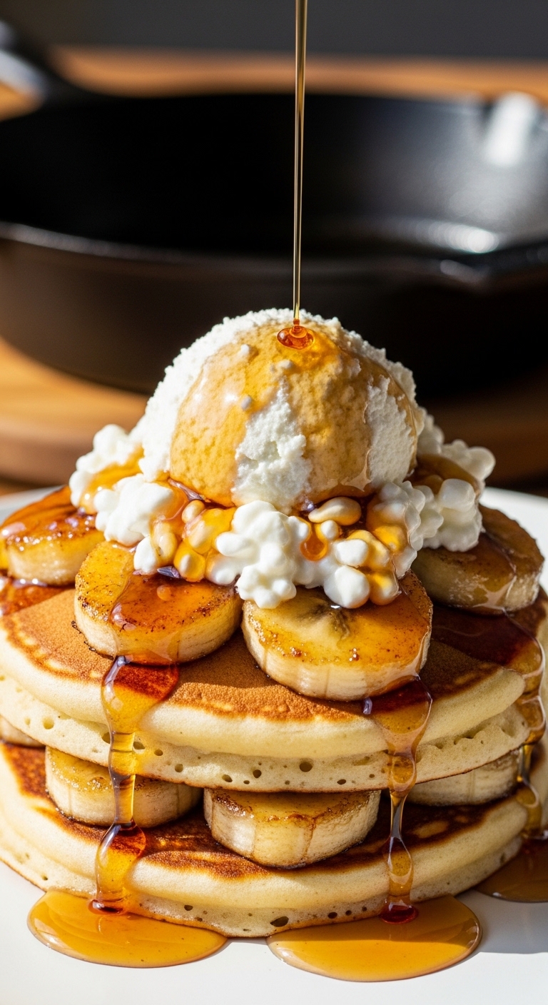 10. Banana Foster Cottage Cheese Pancake Stack (Comforting, Decadent Breakfast-Dessert)