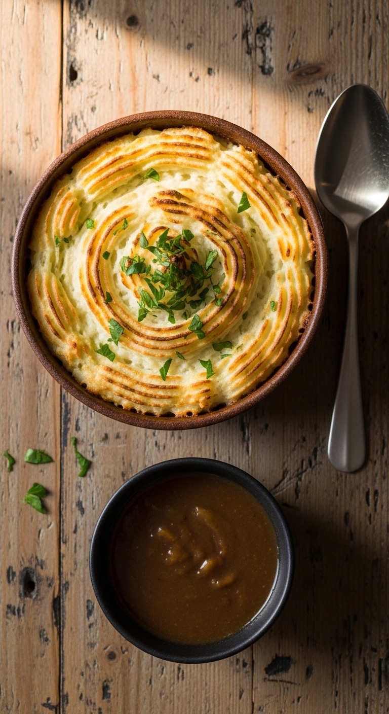 Spoon into bowls and sprinkle with chives for color. Pair with a simple green salad or roasted Brussels sprouts. Store leftovers in fridge up to 3 days and reheat covered in oven. Mash can be made ahead and refrigerated; assemble and bake when ready. A cozy family favorite for chilly nights.