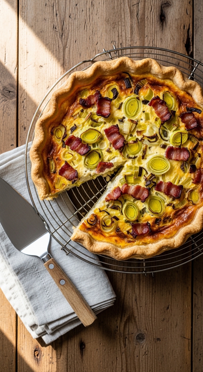 This quiche uses cottage cheese in the custard for a tangy, creamy interior. Leeks and bacon add savory depth. The texture is silky and light compared to heavy cream versions. It’s excellent for brunch or a light supper. Expect a flaky crust and a bright, savory filling.