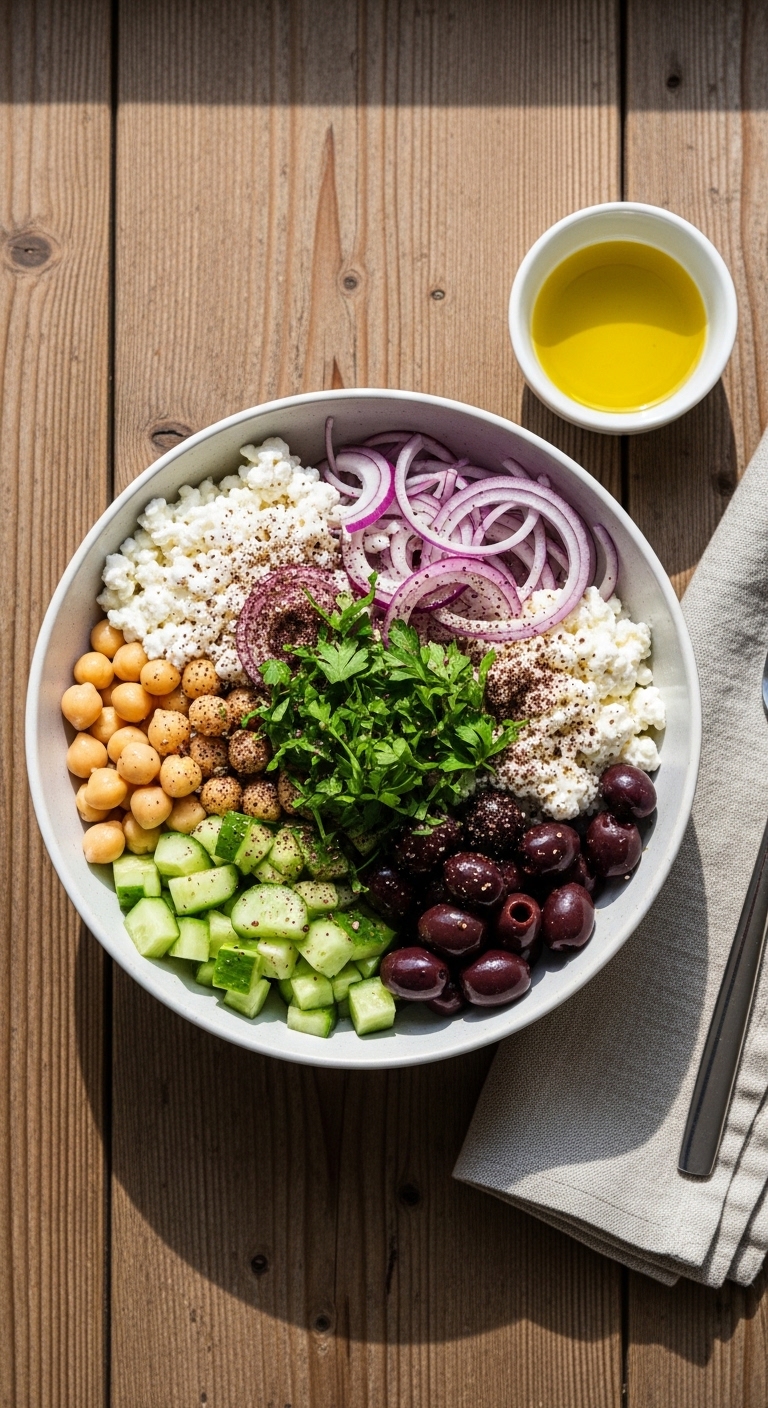 3. Mediterranean Cottage Cheese Salad with Chickpeas (Low-Calorie Lunch)