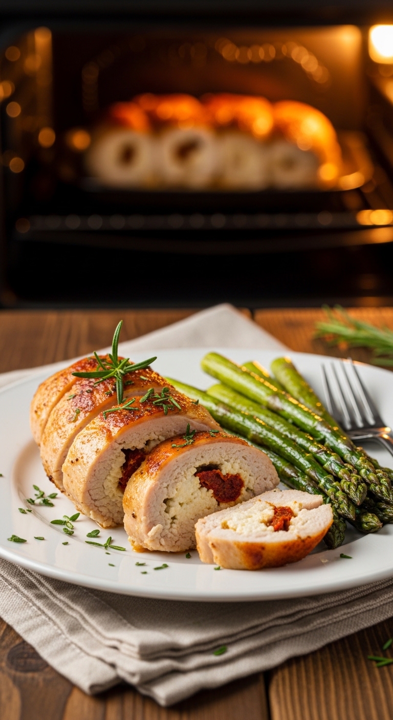 12. Cottage Cheese Stuffed Chicken Breast with Sun-Dried Tomatoes (Low-Calorie Dinner)