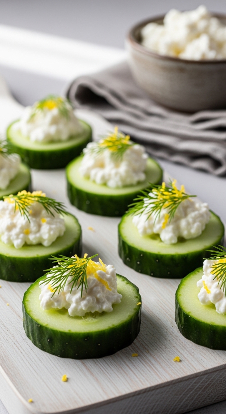 These cool cucumber bites are crisp and herby. The cottage cheese is tangy and creamy against a crunchy cucumber base. They’re a refreshing low-calorie snack, perfect for afternoons or parties. If you love dill and bright citrus notes, this simple bite will satisfy savory cravings. Expect cool texture, fresh aroma, and a lively lemon finish.