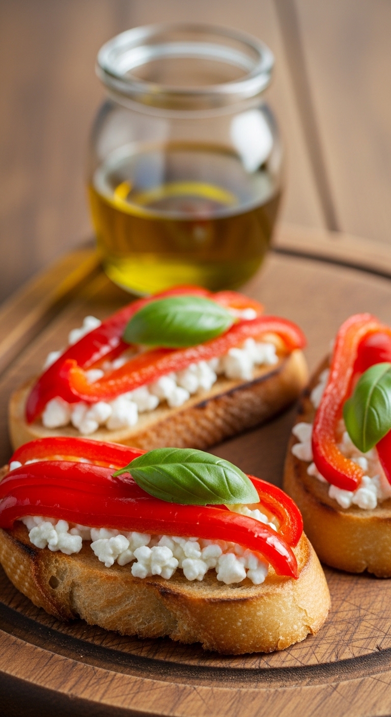 - Doneness: crostini should be golden and tomatoes juicy.