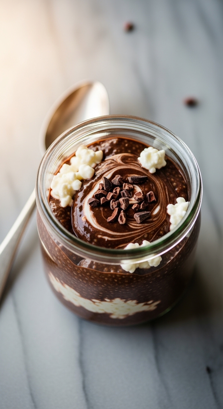 This pudding is rich yet low in calories thanks to cottage cheese and chia. It tastes like chocolate mousse but has protein that fills you up. Texture is silky with tiny chia seeds for a pleasant chew. If you crave something sweet and chocolatey under 200 calories, this will hit the spot. The aroma is cocoa-forward and satisfying.
