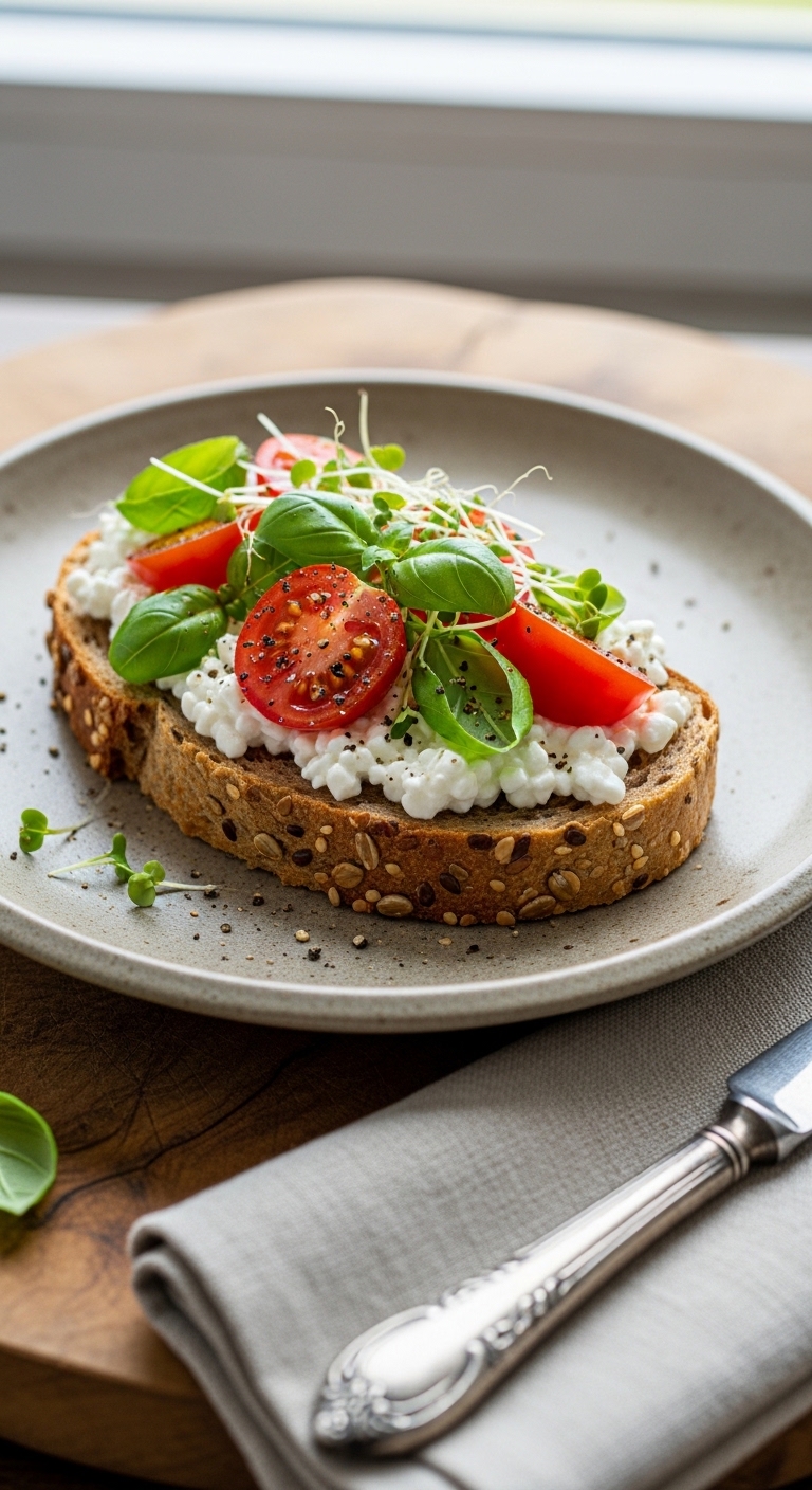 1. Cottage Cheese Recipes: Herbed Tomato Open-Faced Toast