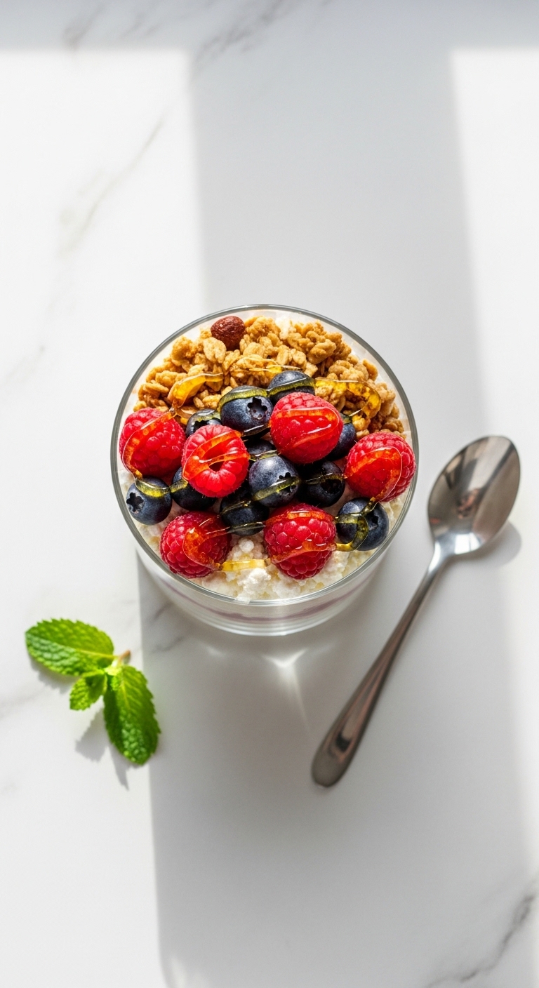 This parfait layers creamy cottage cheese, tart berries, and sweet honey for a quick, balanced treat. It’s bright, fruity, and lightly crunchy from granola. Perfect for breakfast or an afternoon pick-me-up. You’ll love the contrast of cool cottage cheese and sun-warmed honey. The berries smell sweet and slightly tart.