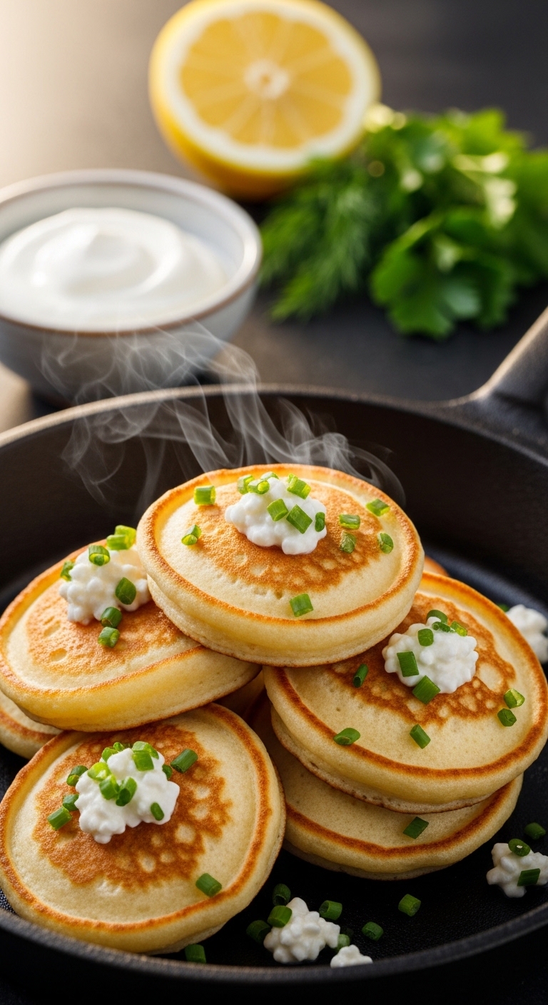3. Savory Cottage Cheese Pancakes (Skillet Blini)