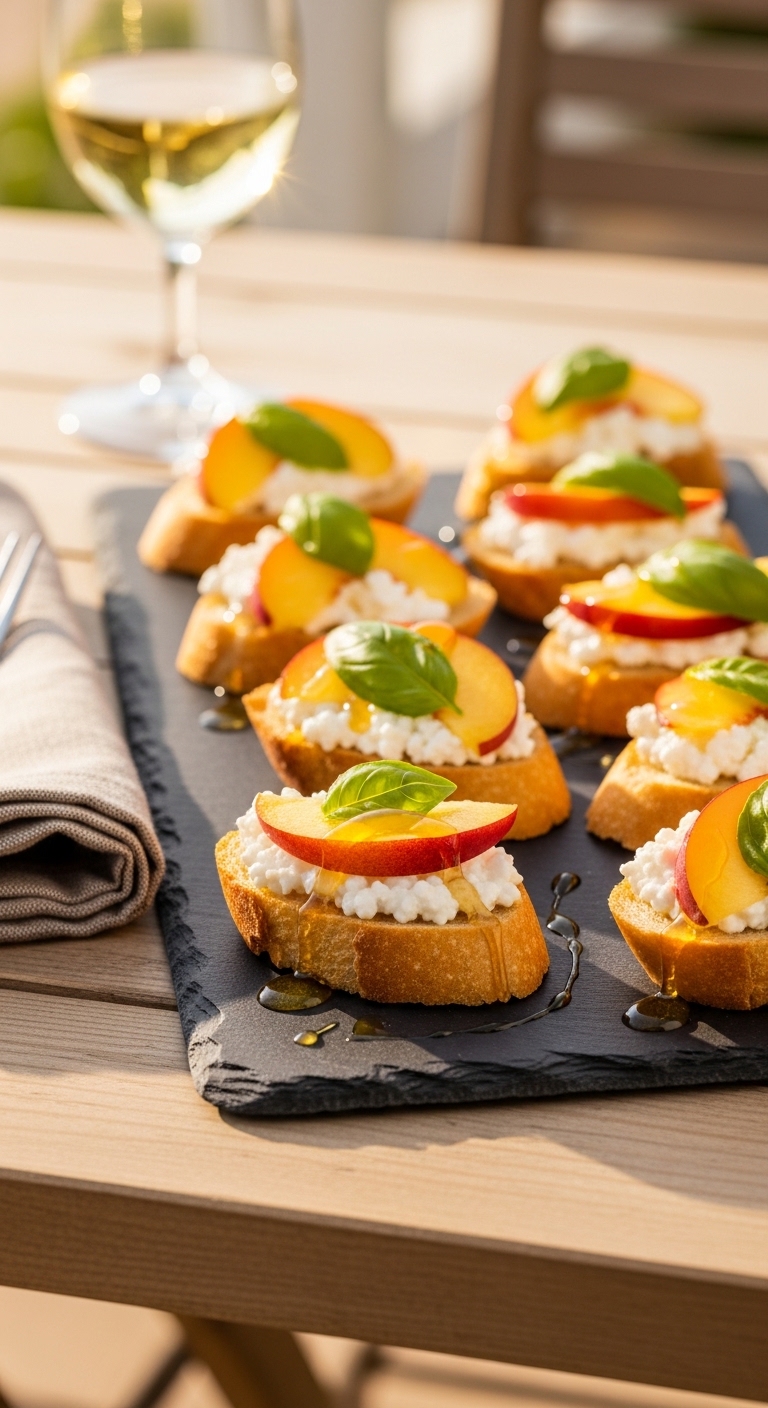 9. Cottage Cheese Recipes: Peach & Basil Crostini