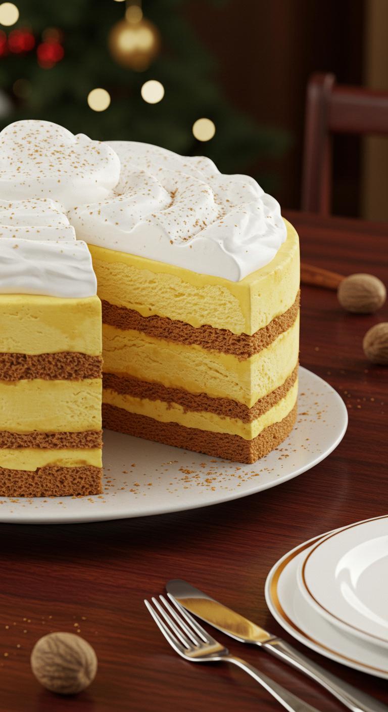 Combining chocolate and eggnog, this dessert is a true holiday treat.