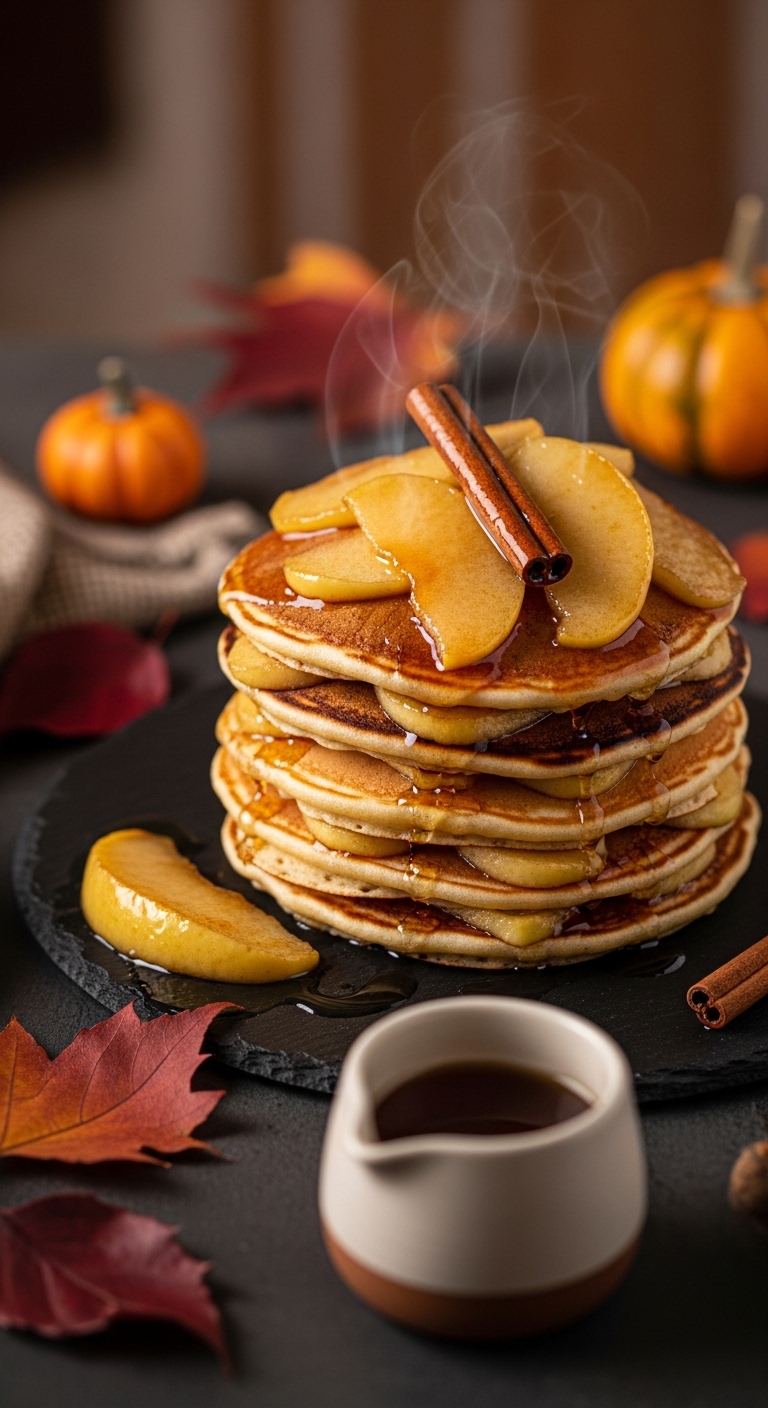 Spoon warm caramelized apples over the stack and drizzle with extra pan sauce or maple syrup. Add a spoonful of Greek yogurt or whipped cream. Pair with hot tea or spiced coffee. Keep leftovers refrigerated up to 2 days; reheat apples gently on the stovetop.