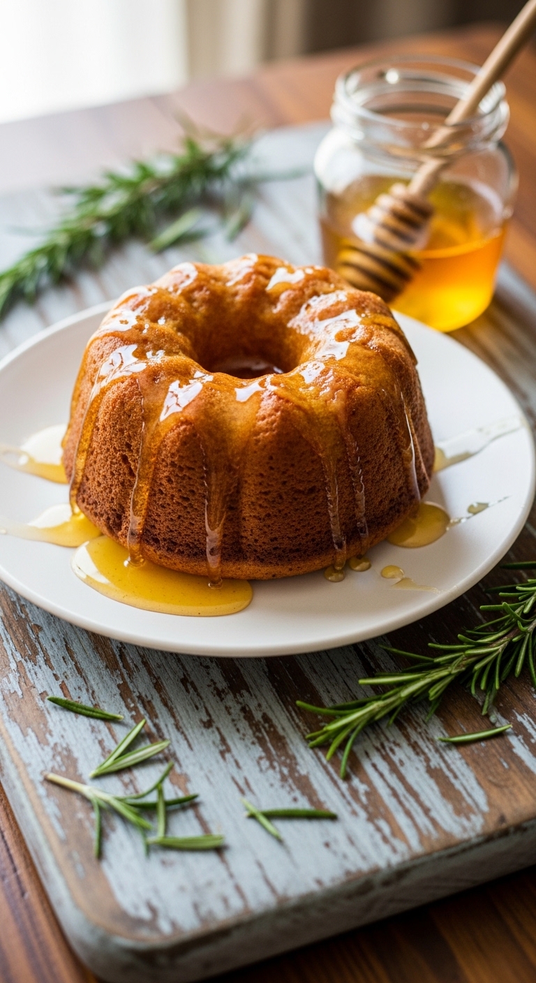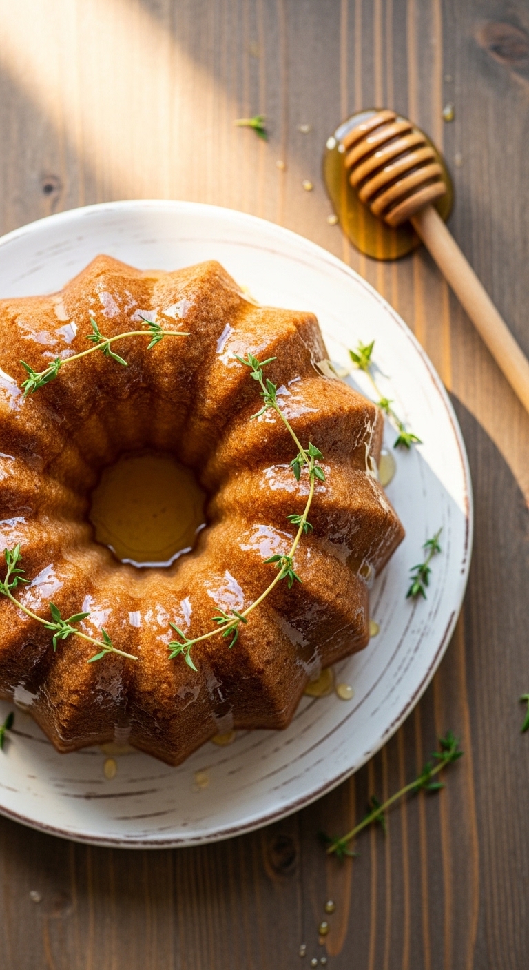 This honey yogurt bundt cake is aromatic with a subtle herbaceous edge from thyme. Yogurt ensures a moist, tender crumb while honey adds floral sweetness and a glossy glaze. It’s a sophisticated choice for garden parties or cozy family gatherings. The scent of thyme and honey is comforting and refined.
