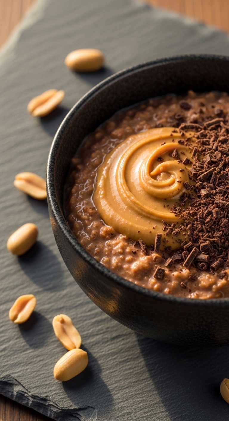 Spoon into a matte bowl to contrast the dark chocolate. Add a swirl of extra peanut butter and a few banana slices. Pair with cold brew or a simple berry salad. Store covered in the fridge for up to 24 hours. For make-ahead, assemble components and warm gently before eating.