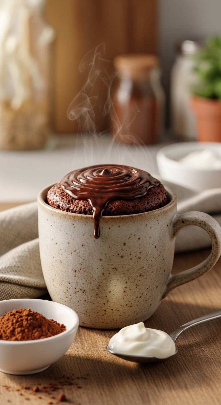 This single-serving mug cake is quick and satisfyingly tender. Yogurt keeps the crumb moist and soft. The chocolate swirl gives a dessert-like finish that melts into the cake.