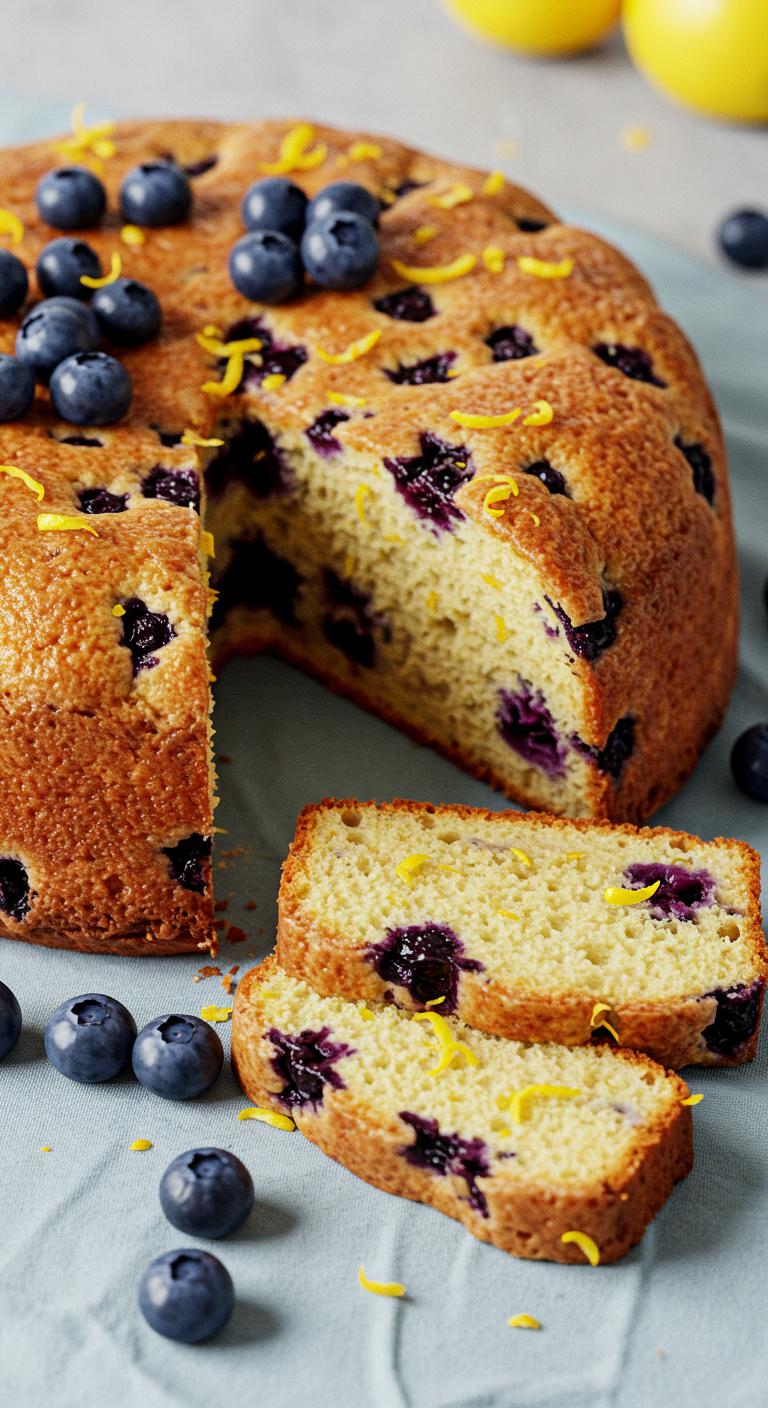 - Cream butter and sugar, add eggs, lemon zest, and fold in flour, blueberries, and baking soda.