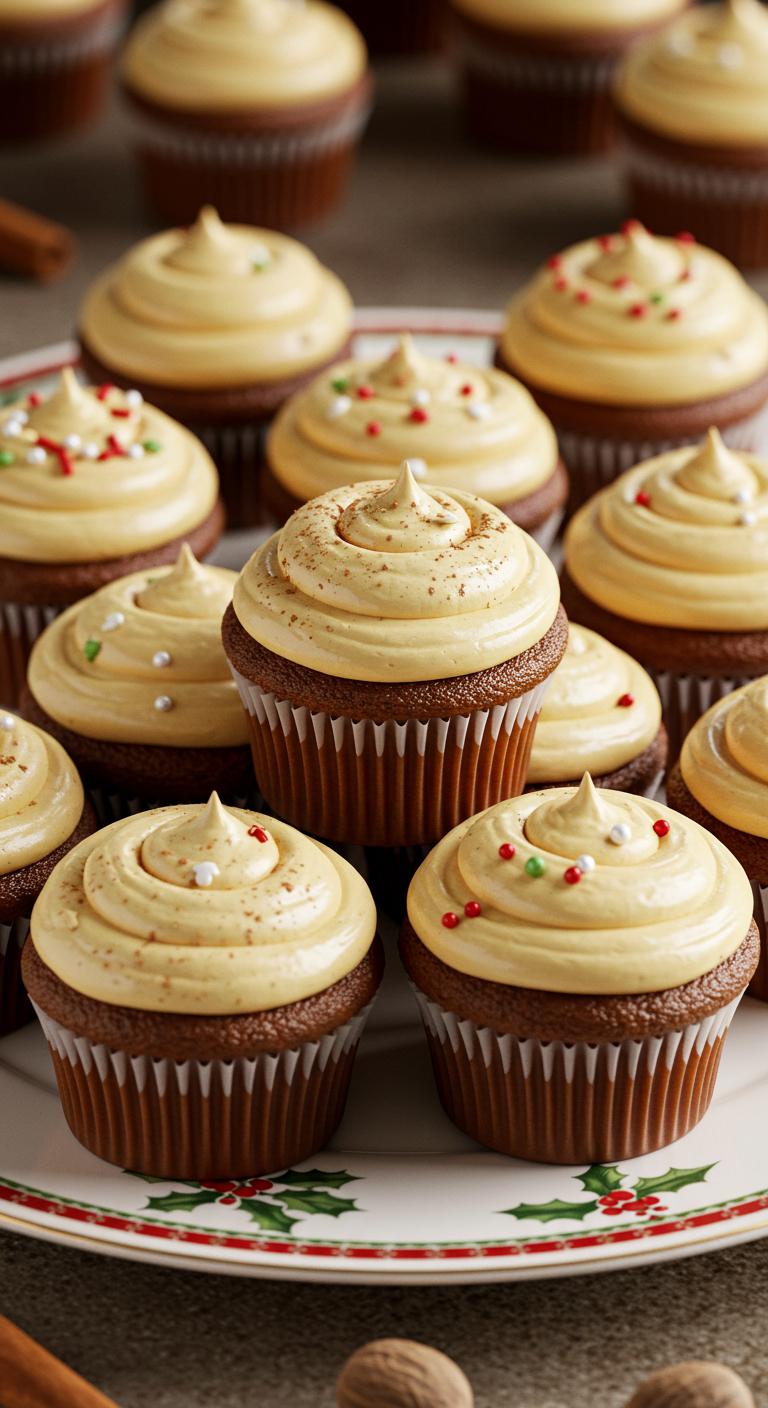 8. Spiced Gingerbread Cupcakes with Eggnog Frosting