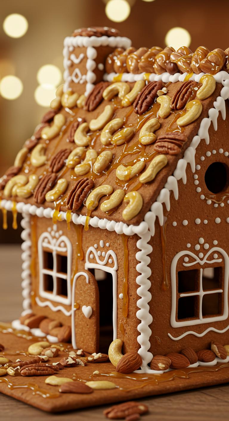 - Shape your gingerbread pieces into whimsical shapes like pointed roofs.