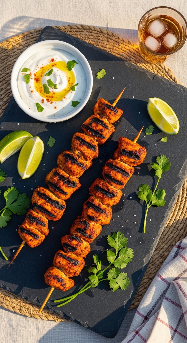 Serve on a platter with sliced red onion, cucumber, and lime wedges. Offer extra cool yogurt sauce or mint chutney. Pair with basmati rice or warm naan. Store leftover chicken in the fridge up to 3 days. For make-ahead, marinate overnight and grill day-of for best charred flavor. This works year-round and shines at summer cookouts.