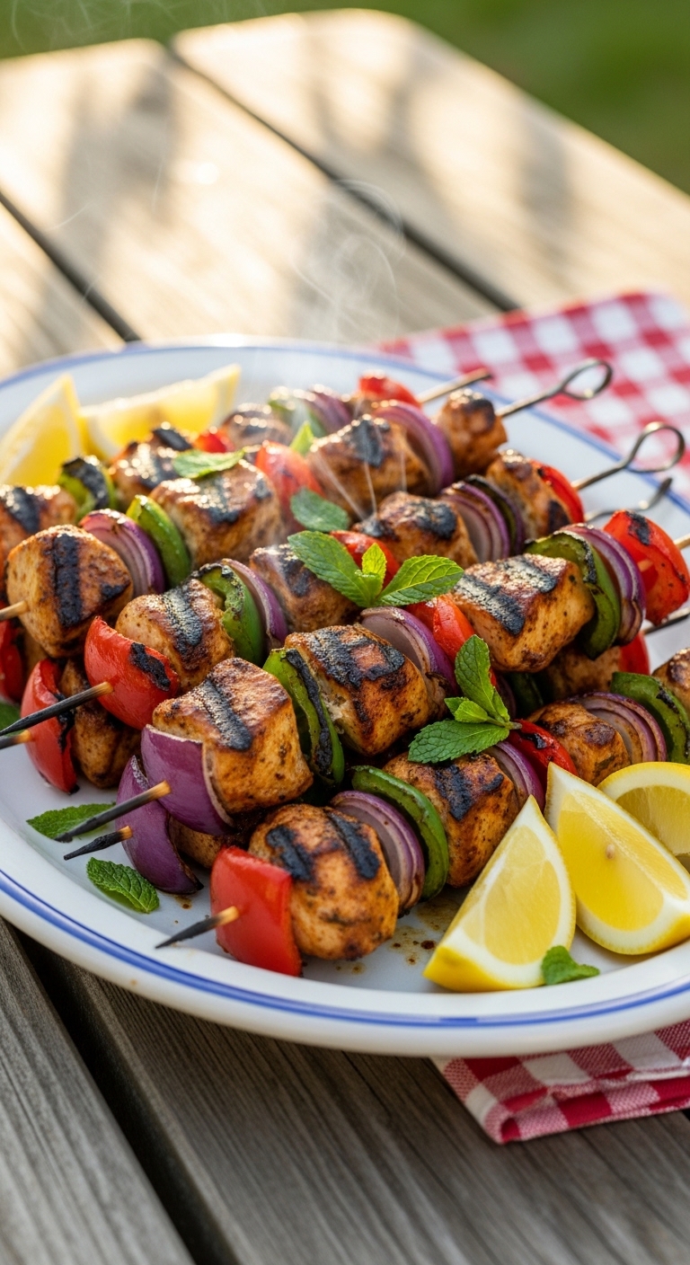 - Grill for 10–12 minutes, turning every 3–4 minutes until char marks appear and internal temp reads 165°F (74°C). If broiling, place on a foil-lined tray and broil 8–10 minutes, turning once.
